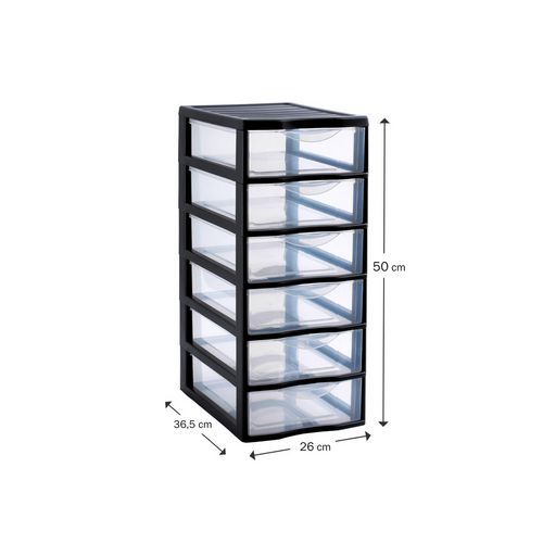 | Nombre del producto | Torre de almacenamiento de plástico A4 Orgamix 6 cajones, Ancho dorso: 26 cm, Material: Polipropileno |