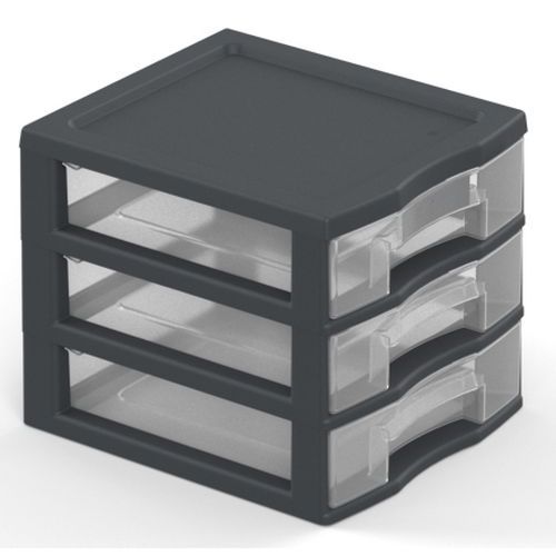 40 % de plástico reciclado. Fácilmente apilable. Cajones con topes anticaídas. Parte superior honda para depositar objetos pequeños. Asa de sujeción ergonómica en cada cajón. Cajón de almacenamiento XL: 38,5 × 37 × 14 cm.