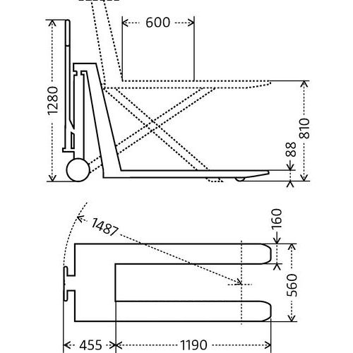 | Nombre del producto | Transpaleta eléctrica de alta elevación- Longitud de la horquilla 1190 mm, Carga: 1000 kg |