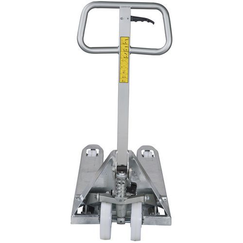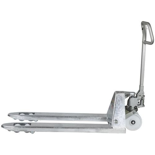 | Nombre del producto | Transpaleta manual galvanizada, Carga: 2500 kg, Longitud Horquilla: 1150 mm, Rueda directriz material: Nailon |