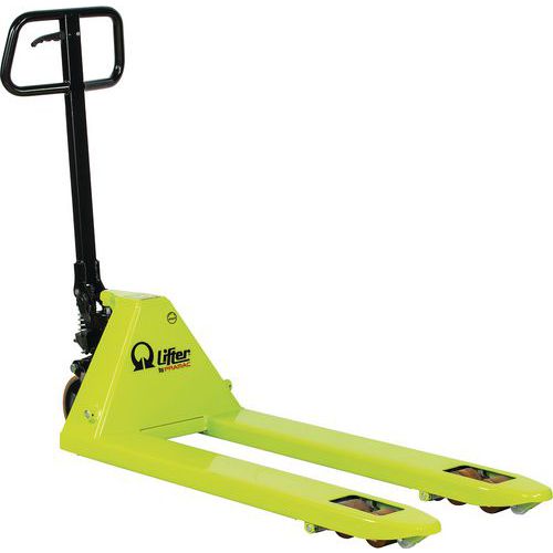 | Nombre del producto | Transpaleta manual GS25, Carga: 2500 kg, Longitud Horquilla: 1150 mm, Rueda directriz material: Poliuretano |