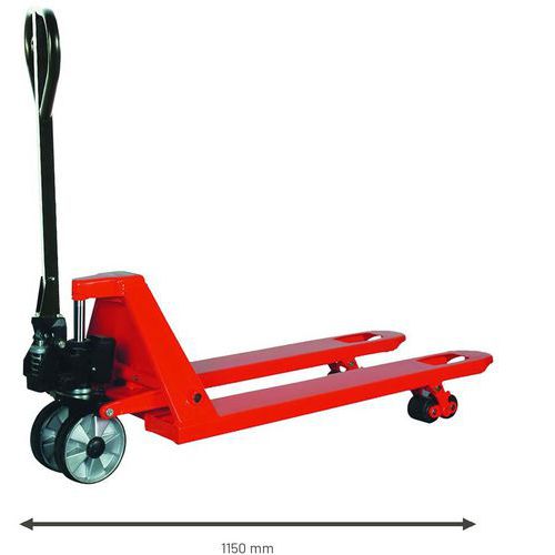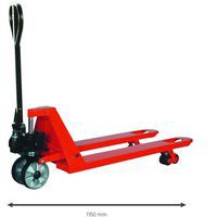 | Nombre del producto | Transpaleta manual pro, Carga: 2500 kg, Longitud Horquilla: 1150 mm, Tipo de rueda de horquilla: Boggies |