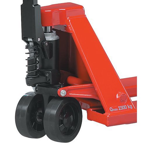 Transpaleta manual Toyota 2300 kg con freno de estacionamiento, Carga: 2300 kg, Longitud Horquilla: 800 mm