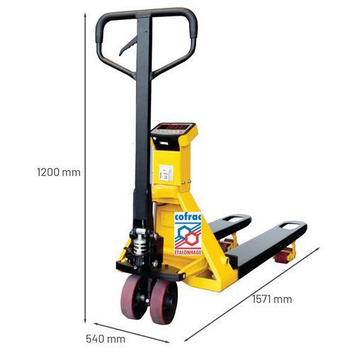 | Nombre del producto | Transpaleta pesadora con impresora y certificado COFRAC, Carga: 2000 kg, Longitud Horquilla: 1160 mm |