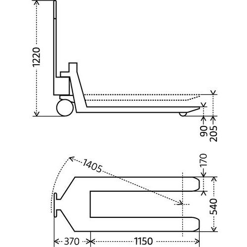 | Nombre del producto | Transpaleta pesadora manual LHM200SC - Longitud de la horquilla 1150 mm - Capacidad 2000 kg |
