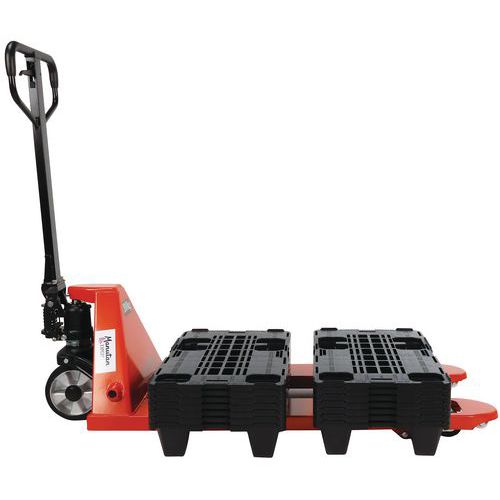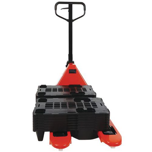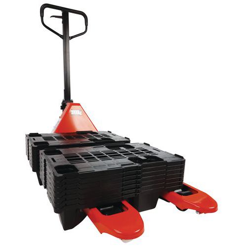 | Nombre del producto | Transpaleta manual 2000 kg + 15 palés 600x400mm, Carga: 2000 kg, Longitud Horquilla: 1150 mm |