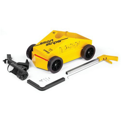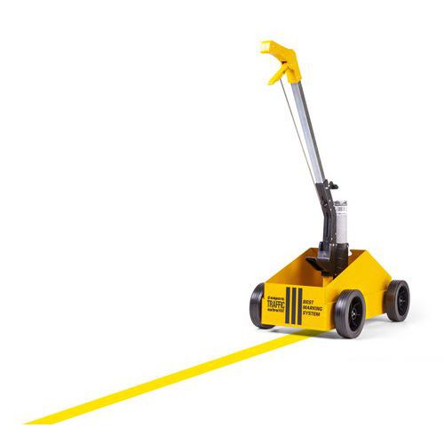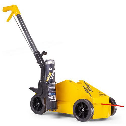 - Peso: 7 kg. Flecha de guía roja de alta visibilidad. Ruedas de 147 mm de diámetro, banda de rodadura extraancha y flexible de 40 mm para una rodadura y estabilidad perfectas tanto en interiores como en exteriores. Recipiente para aerosoles: para un suministro rápido de 5 aerosoles AMPERE TRAFFIC EXTRA PAINT XL®, es decir, entre 400 y 600 m de trazado lineal, en función de la anchura del trazado y de la naturaleza del terreno. El aerosol de pintura de trazado en suelo AMPERE TRAFFIC EXTRA PAINT XL® se coloca automáticamente en el soporte. Empuñadura ergonómica y gatillo de activación más cómodos. Garantía de 10 años sin mantenimiento ni limpieza.