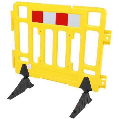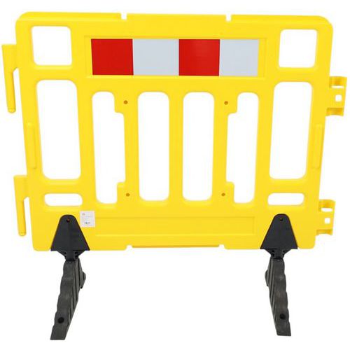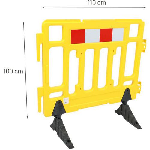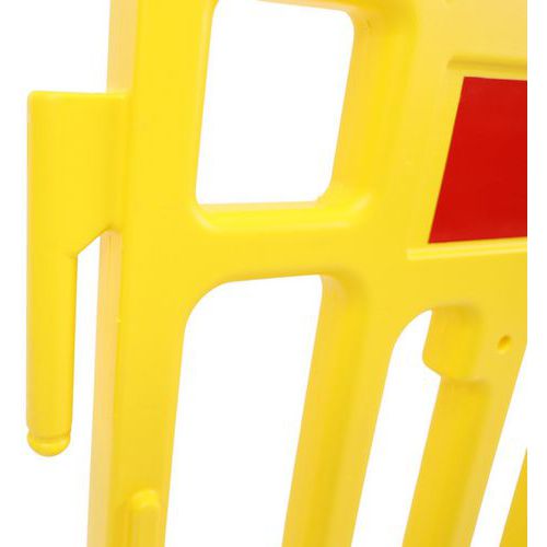 Barrera de seguridad de plástico fácil de transportar. Adecuada para todo tipo de usos urbanos. Cuenta con bandas reflectantes en un lado para una mejor visibilidad. Conexión rápida y sencilla gracias a sus enganches. El material de polietileno hace que la barrera sea resistente a todas las condiciones climáticas.