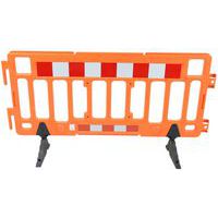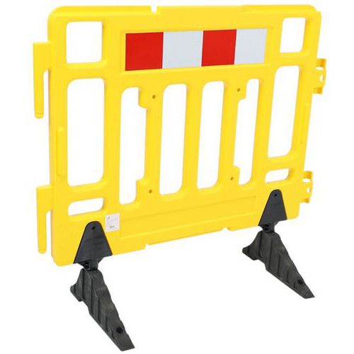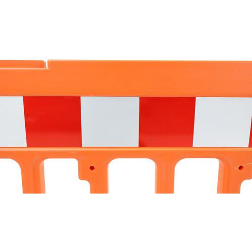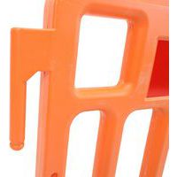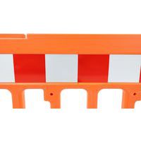 Barrera de seguridad de plástico fácil de transportar. Adecuada para todo tipo de usos urbanos. Cuenta con bandas reflectantes en un lado para una mejor visibilidad. Conexión rápida y sencilla gracias a sus enganches. El material de polietileno hace que la barrera sea resistente a todas las condiciones climáticas. La barrera no se oxida y se instala sin ruido. Patas de goma muy estables. Garantía al cliente : 10 años