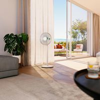 El ventilador de pie Finn garantiza un agradable frescor durante la temporada de calor gracias a su función oscilante y a su tecnología de alta eficiencia energética. Gracias a su pie desmontable, el ventilador Finn se puede utilizar como ventilador de suelo, de mesa o de pie. Además, es extraordinariamente silencioso y adecuado para dormitorios, habitaciones infantiles y despachos. Este ventilador flexible gira silenciosamente hacia adelante y hacia atrás, haciendo circular el aire de manera óptima por la habitación hasta una distancia de 8 metros. Las funciones del ventilador Finn, como el modo brisa natural, el modo nocturno y el temporizador de 1 a 8 horas, son muy fáciles de controlar con el mando a distancia por infrarrojos incluido.