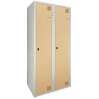 Taquilla de secado con aire caliente por impulsos, muy robusta, con casillero y doble perchero.  Perchero de doble compartimento: almacenamiento separado ropa limpia/sucia.  Cuerpo y puerta de chapa electrogalvanizado, con refuerzo en omega en la altura.  Cómoda de utilizar con un sistema de bisagras que facilita una apertura de 180°.  Higiénica con una doble ventilación en parte alta y baja del frontal de la taquilla.  Bonito acabado en pintura epoxi lacada, disponible en una amplia paleta de colores atractivos.   2 cierres a elección: cerradura con llave o anclaje para candados.  Taquilla con portaetiquetas.  Producto fabricado en Francia.