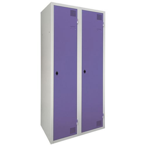 Taquilla de secado con aire caliente por impulsos, muy robusta, con casillero y doble perchero. Perchero de doble compartimento: almacenamiento separado ropa limpia/sucia. Cuerpo y puerta de chapa electrogalvanizado, con refuerzo en omega en la altura. Cómoda de utilizar con un sistema de bisagras que facilita una apertura de 180°. Higiénica con una doble ventilación en parte alta y baja del frontal de la taquilla. Bonito acabado en pintura epoxi lacada, disponible en una amplia paleta de colores atractivos. 2 cierres a elección: cerradura con llave o anclaje para candados. Taquilla con portaetiquetas. Producto fabricado en Francia.
