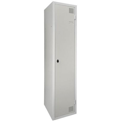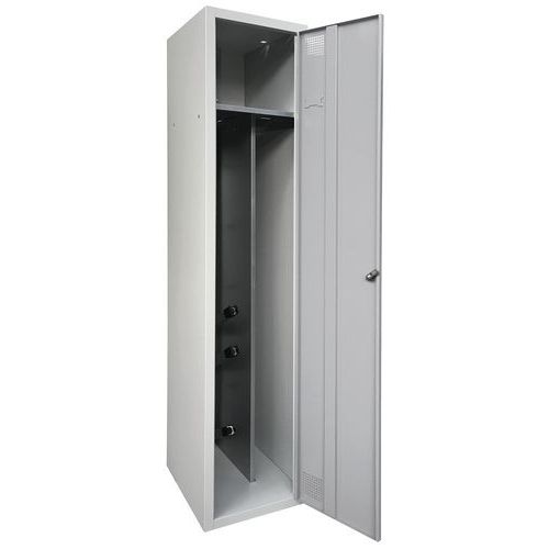 Taquilla de secado con aire caliente por impulsos, muy robusta, con casillero y doble perchero. Perchero de doble compartimento: almacenamiento separado ropa limpia/sucia. Cuerpo y puerta de chapa electrogalvanizado, con refuerzo en omega en la altura. Cómoda de utilizar con un sistema de bisagras que facilita una apertura de 180°. Higiénica con una doble ventilación en parte alta y baja del frontal de la taquilla. Bonito acabado en pintura epoxi lacada, disponible en una amplia paleta de colores atractivos. 2 cierres a elección: cerradura con llave o anclaje para candados. Taquilla con portaetiquetas. Producto fabricado en Francia.