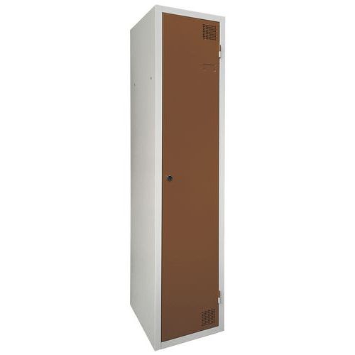 Taquilla de secado con aire caliente por impulsos, muy robusta, con casillero y doble perchero. Perchero de doble compartimento: almacenamiento separado ropa limpia/sucia. Cuerpo y puerta de chapa electrogalvanizado, con refuerzo en omega en la altura. Cómoda de utilizar con un sistema de bisagras que facilita una apertura de 180°. Higiénica con una doble ventilación en parte alta y baja del frontal de la taquilla. Bonito acabado en pintura epoxi lacada, disponible en una amplia paleta de colores atractivos. 2 cierres a elección: cerradura con llave o anclaje para candados. Taquilla con portaetiquetas. Producto fabricado en Francia.