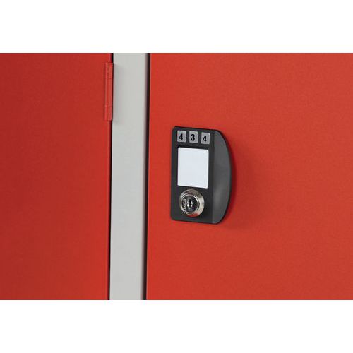 Taquilla con varios compartimentos con perchero con bonito acabado de epoxi. Ángulos en la esquina redondeada para una seguridad máxima. Vestuario con revestimiento ultrarresistente a los arañazos. Cierre silencioso con topes de plástico. Rejilla de aireación en la parte posterior de cada taquilla. Asa de cierre con portaetiquetas.