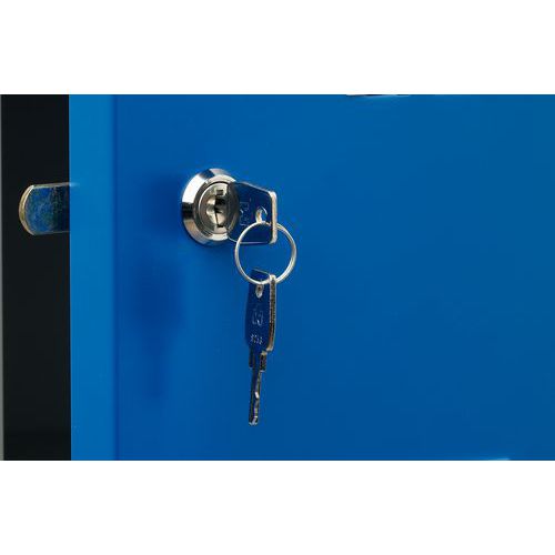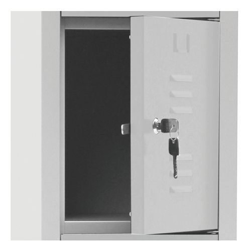 Taquilla con base y topes antirruido. Equipada con orificios para montaje en la pared. Ventilación en la parte superior e inferior de la cara delantera. Puertas reforzadas con bisagras invisibles. Atractivo acabado con portaetiquetas embutido. Chapa espesor : 7/10a Garantía al cliente : 10 años