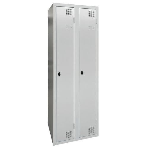 Taquilla de secado con aire caliente por impulsos, de gran robustez, con casillero y perchero. Cuerpo y puerta de chapa electrogalvanizado, con refuerzo en omega en la altura. Cómoda de utilizar con un sistema de bisagras que facilita una apertura de 180°. Higiénica con una doble ventilación en parte alta y baja del frontal de la taquilla. Bonito acabado en pintura epoxi lacada, disponible en una amplia paleta de colores atractivos. 2 cierres a elección: cerradura con llave o anclaje para candados. Taquilla con portaetiquetas. Producto fabricado en Francia.