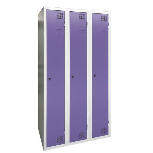 Taquilla de secado con aire caliente por impulsos, de gran robustez, con casillero y perchero. Cuerpo y puerta de chapa electrogalvanizado, con refuerzo en omega en la altura. Cómoda de utilizar con un sistema de bisagras que facilita una apertura de 180°. Higiénica con una doble ventilación en parte alta y baja del frontal de la taquilla. Bonito acabado en pintura epoxi lacada, disponible en una amplia paleta de colores atractivos. 2 cierres a elección: cerradura con llave o anclaje para candados. Taquilla con portaetiquetas. Producto fabricado en Francia.