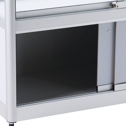 - Armario bajo con 2 puertas de corredera que se pueden cerrar con una cerradura de cilindro.