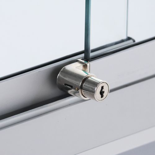 - Puerta corredera de vidrio templado (6 mm) con candado.
