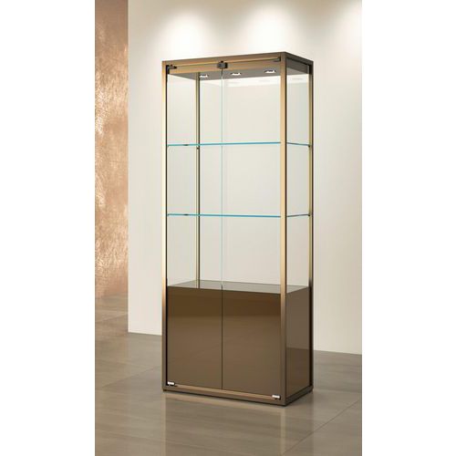 Vitrina de exposición con almacenamiento, Base color: Bronce, Altura: 190 cm, Ancho: 75 cm