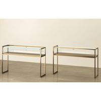 Mesa vitrina de exposición con iluminación, lista para su uso de inmediato. Estructura robusta y resistente. Cristal templado de alta calidad en todas las caras (parte superior y puertas incluidas). 2 puertas con cerraduras de seguridad. Iluminación horizontal con tira LED de 4000°K.