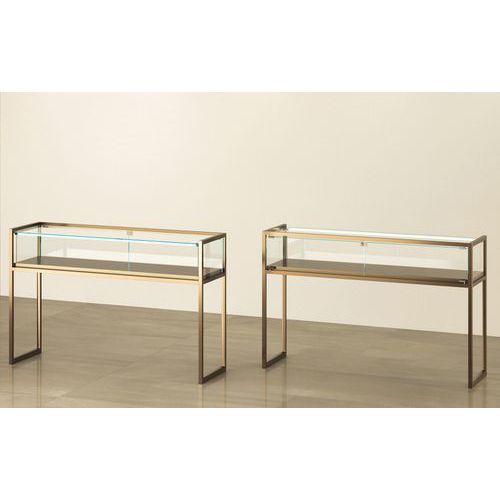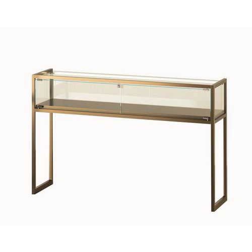 Vitrina de exposición con patas, Base color: Bronce, Altura: 95 cm, Ancho: 95 cm, Profundidad: 45 cm
