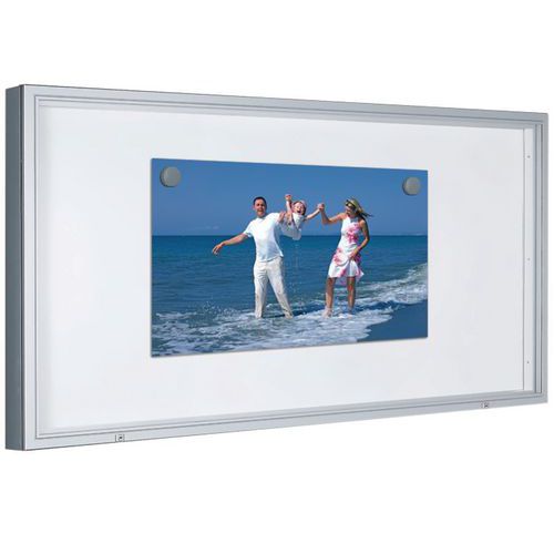 - Vitrina con marco de perfil de aluminio anodizado plata.