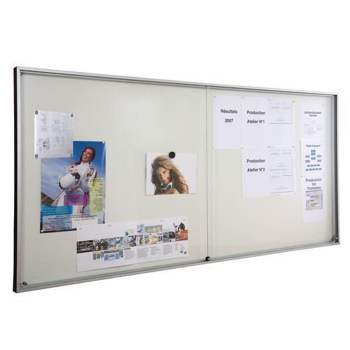 - Vitrina de interior con marco de perfil de aluminio anodizado plata.