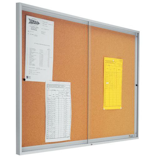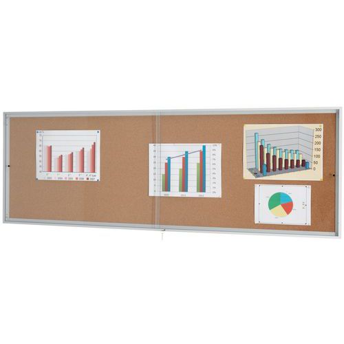 Vitrina de interior con puertas correderas - Fondo de corcho - Puertas de plexiglás - Manutan España