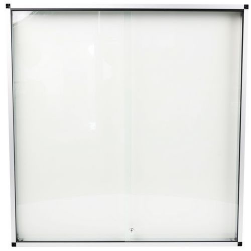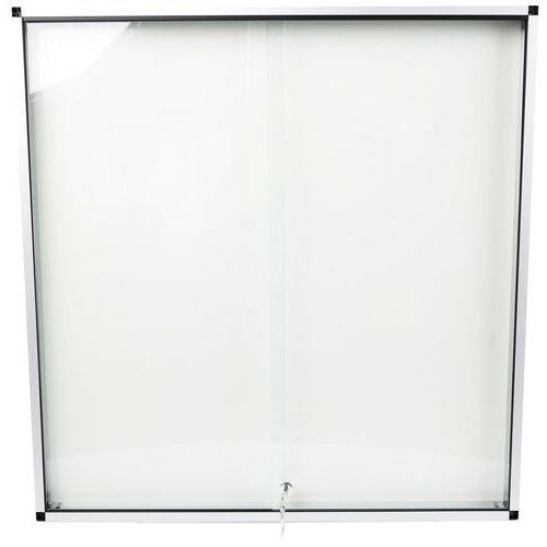 Vitrina para anuncios de interior robusta, segura y ligera. Superficie magnética de acero lacado para la visualización de sus documentos mediante placas magnéticas. Puerta corredera con cerradura transparente que ofrece una excelente visibilidad en presentaciones de productos. Vitrina de cristal reforzado de 5 mm de espesor para mayor seguridad. Se puede cerrar con la cerradura y se suministra con 2 llaves.