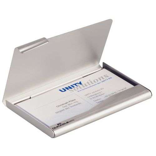 - Caja de aluminio elegante para guardar 15 tarjetas de visita.